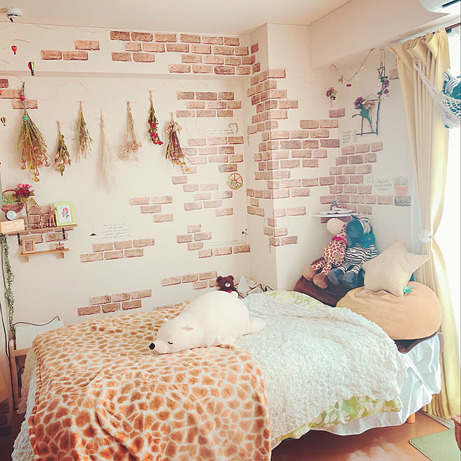 ベッド周り レンガシート ジブリ 100均 ナチュラル などのインテリア実例 19 01 14 19 04 57 Roomclip ルームクリップ