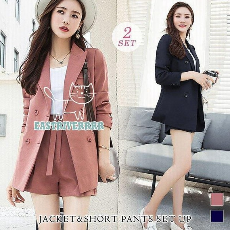 セットアップ レディース スーツ 春 夏 春夏 紺 ジャケット 2点セット 上下セット ショートパンツ アウター ネイビー テラコッタ 代 通販 Lineポイント最大get Lineショッピング